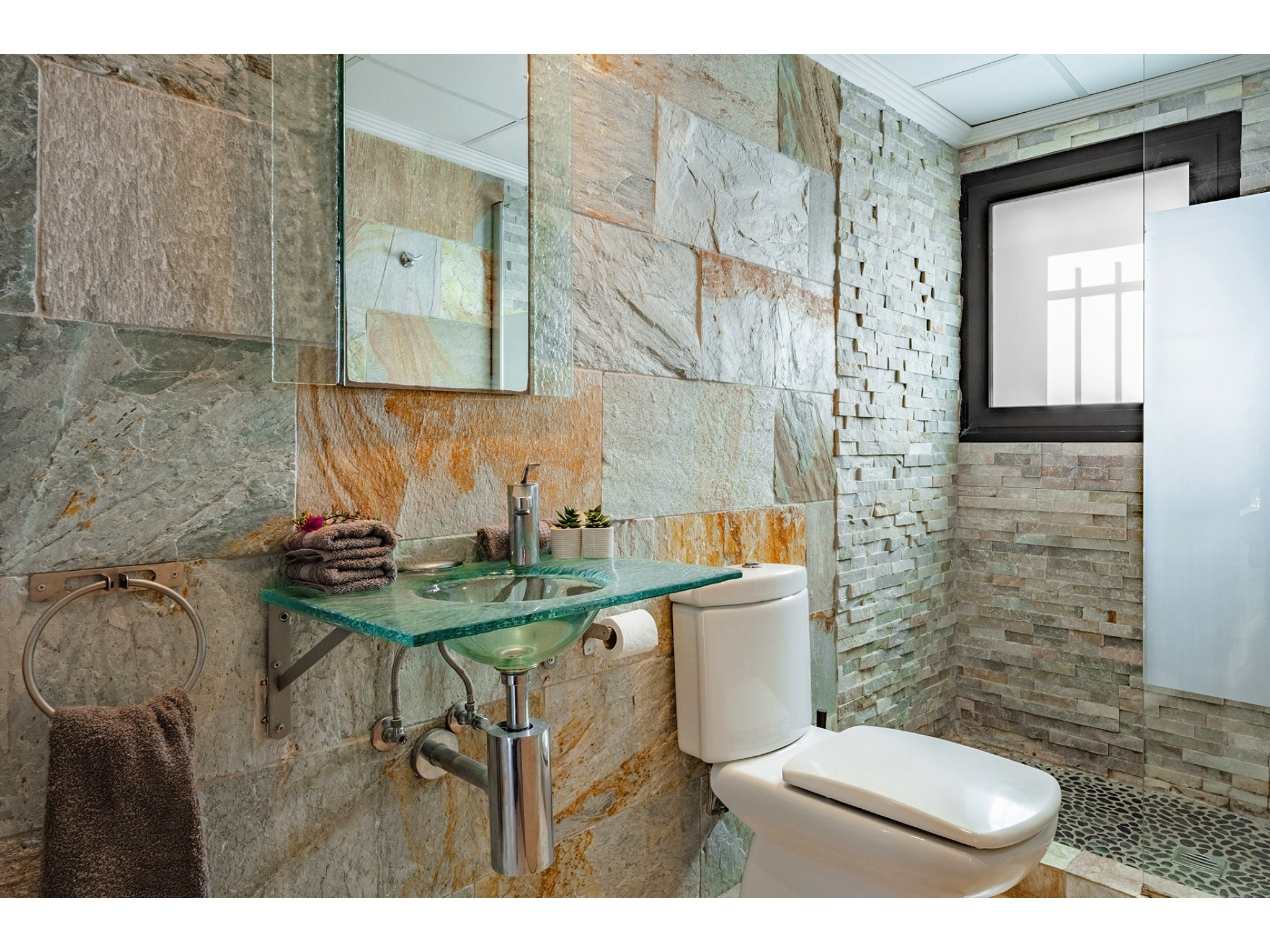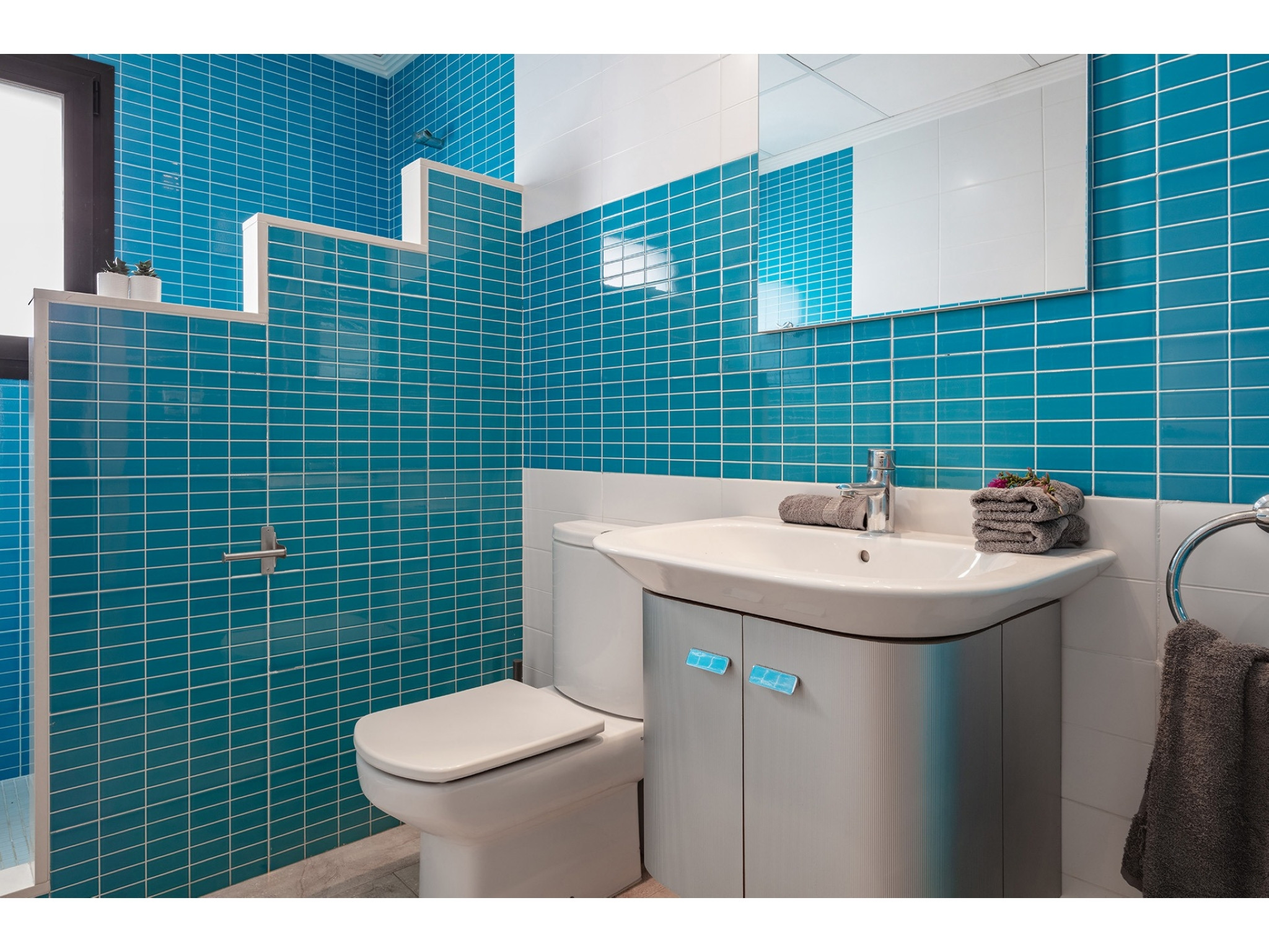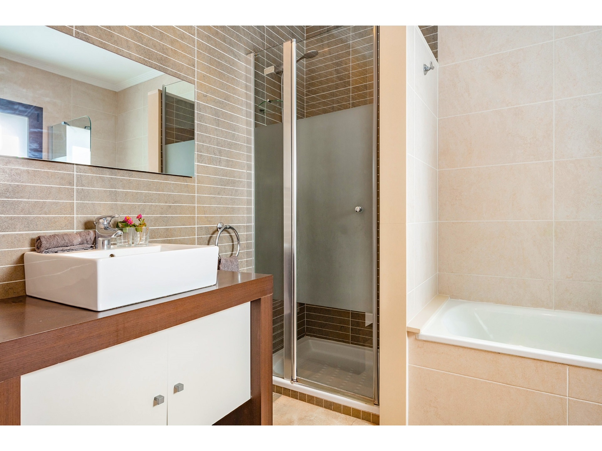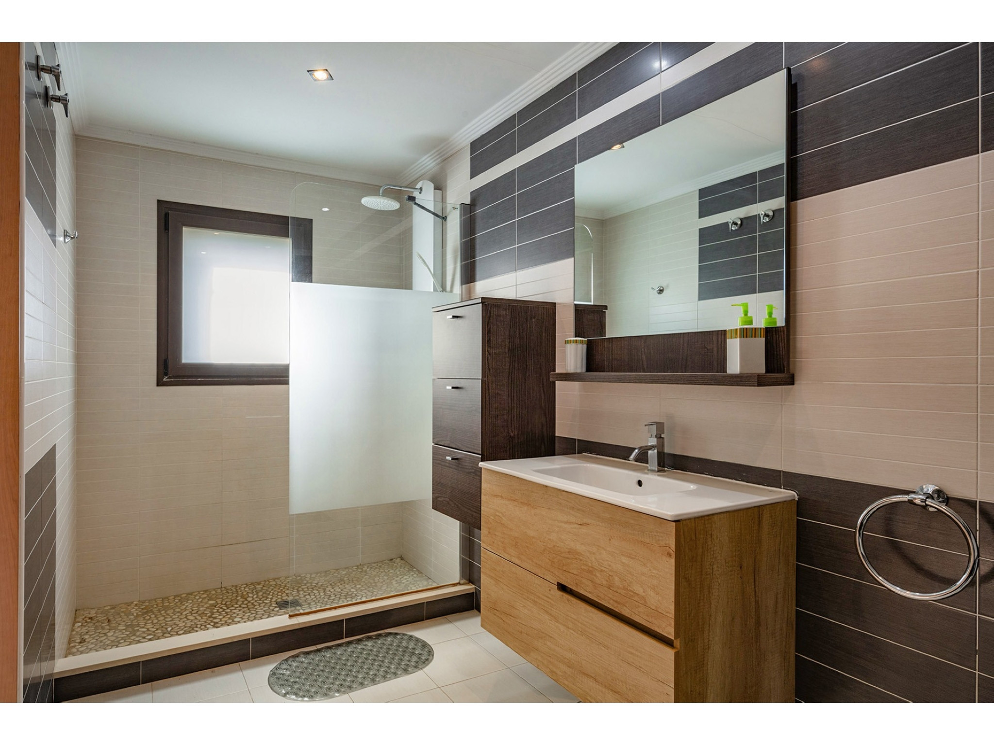 Villa Amanda besteht aus zwei Ebenen, im Erdgeschoss finden wir ein geräumiges Wohnzimmer mit direktem Zugang zum Garten, eine spektakuläre voll ausgestattete Küche, zwei Schlafzimmer und zwei Badezimmer (eines davon en suite). Das Obergeschoss verfügt über drei Schlafzimmer und drei Badezimmer (davon 2 en suite). Eines dieser Schlafzimmer zeichnet sich durch seine Größe aus, es beherbergt eine runde Badewanne und eine Dusche und von dort gelangen Sie auf eine große Terrasse mit schöner Aussicht.